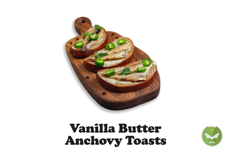 - Serve and Enjoy: Arrange the Vanilla Butter Anchovy Toasts on a serving platter and serve immediately. These toasts are a delightful blend of savory and sweet, offering a healthy and unique twist to your post-dinner snack routine.